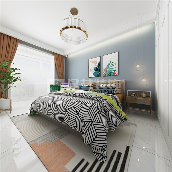 主臥搭配清爽麗人,希望回家的每一天都能有好心情,夫妻和睦,家庭圓滿,是每一個(gè)人的祈求,床頭的燈帶弱化了筒燈的刺眼,窗簾配飾大膽而新穎\