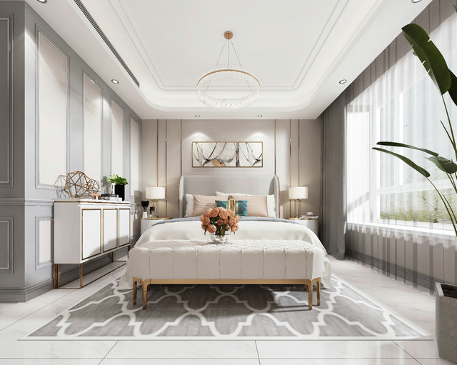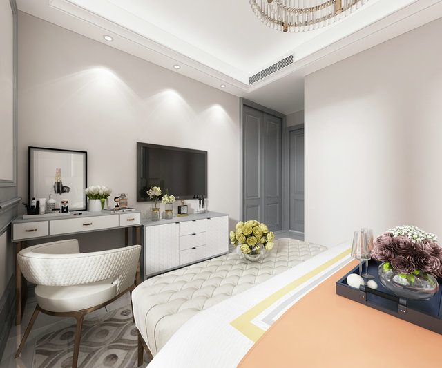 本案設(shè)計(jì)業(yè)主為四口之間老人也會(huì)偶爾來(lái)住需要保留四個(gè)臥室,我沒(méi)有對(duì)墻體有太大的改動(dòng),只有入戶(hù)處預(yù)留了鞋帽柜的位置,業(yè)主喜歡美式輕奢風(fēng)格,所以在色調(diào)上我選用了暖灰色調(diào),整體風(fēng)格以美式為主。