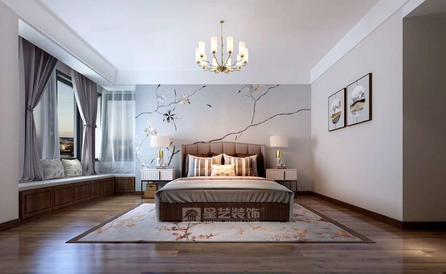 本案整體設計清雅含蓄、古樸大方,大量穩(wěn)重的原木深色系鋪陳,輔以一些靈動的花鳥元素點綴其中,以雅致意,詮釋出舒適寫意、怡然自得的生活魅力。
