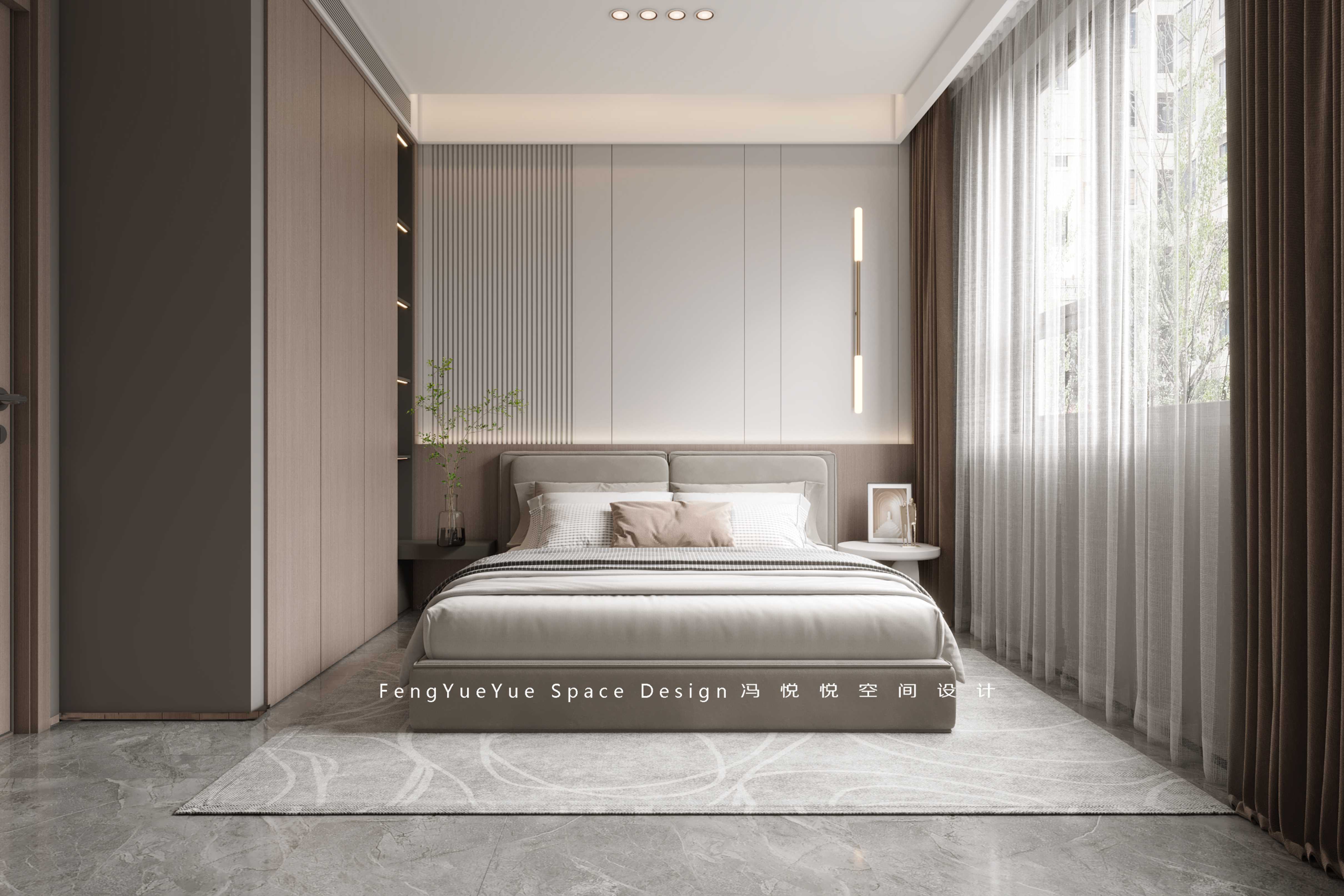主臥木質背景墻的設計是主臥的一個亮點,讓臥室看上去更加高級,也更加時尚。床頭的小臺燈起到很好的裝飾作用,增加了臥室的色彩對比,使空間的色彩更加協(xié)調豐滿。