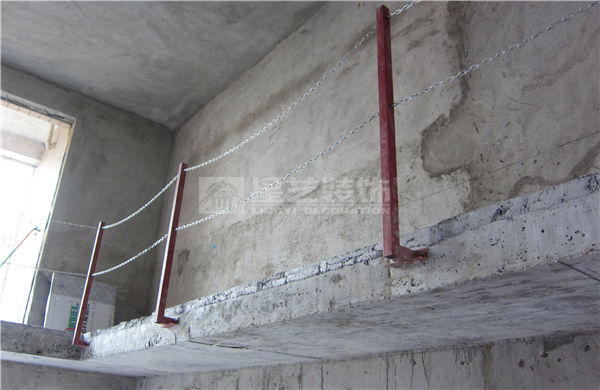 2、樓梯中空防護(hù):樓梯口、中空口等用角鐵方通、鐵鏈進(jìn)行保護(hù),立柱高度不少于