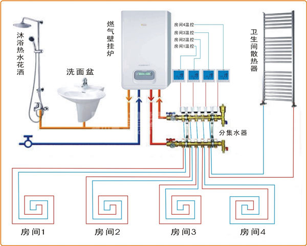 在最后一個(gè)用水點(diǎn)接管返回到熱水器,詳細(xì)見(jiàn)下圖: