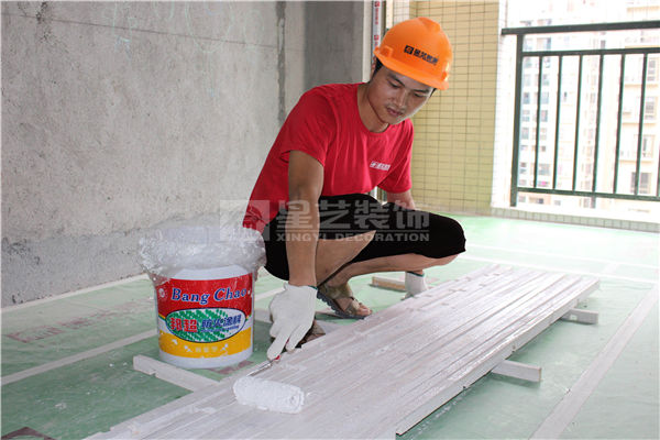 干透后進(jìn)行清邊,并刷上封底漆,避免收縮。