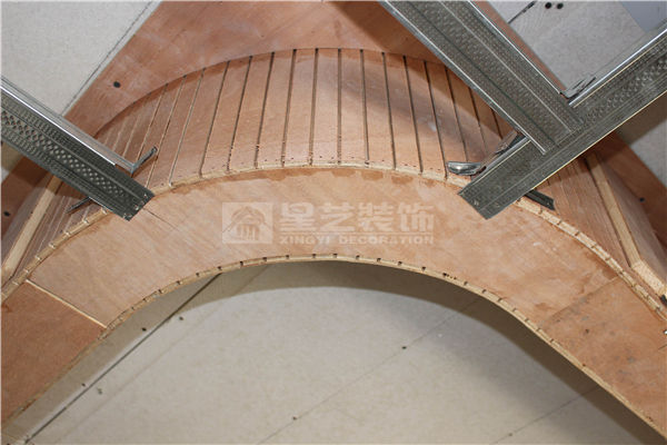 A、弧形或異形天花,用九厘板背面開(kāi)鋸路襯底,面罩3厘板。目的:造型順暢。