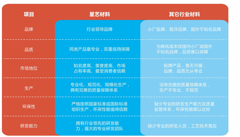 ■ 星藝與材料領(lǐng)域最為優(yōu)秀的企業(yè)建立長(zhǎng)期穩(wěn)定的合作伙伴關(guān)系,確保星藝在同類產(chǎn)品中以最先進(jìn)的科技和最優(yōu)質(zhì)的產(chǎn)品奉獻(xiàn)給廣大的業(yè)主。