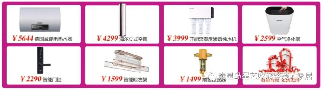 ¥5644德國威能電熱水器,¥4299海爾立式空調(diào),¥3999開能奔泰RO反滲透純水¥1599智能晾衣...各種超值實(shí)用家裝好禮,等你來砸!