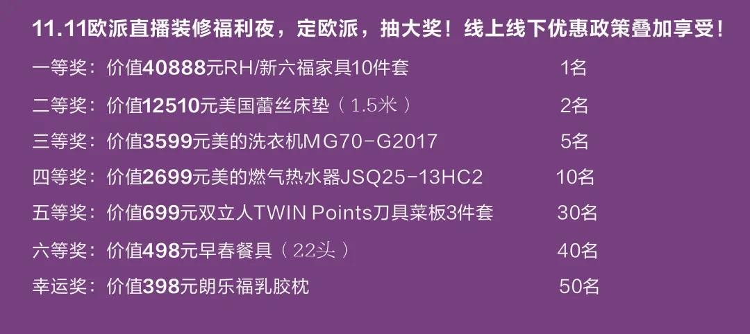 11.11歐派直播裝修福利夜,定歐派,抽大獎!線上線下優(yōu)惠政策疊加享受!